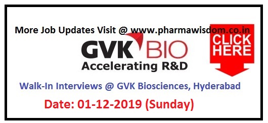 GVK BIO Walk-in on 1st December@ Hyderabad