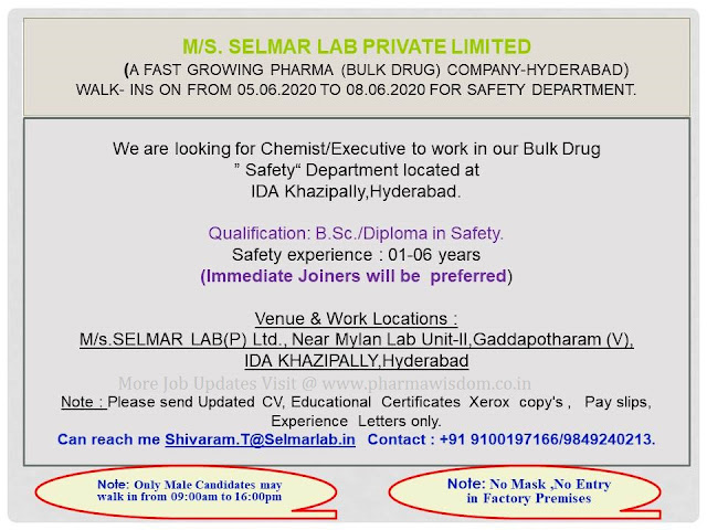 Selmar Lab Pvt. Ltd - Walk-In Interviews for